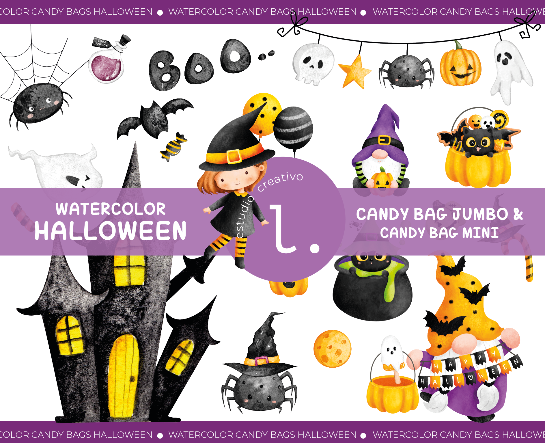 Watercolor Candy Bags Halloween